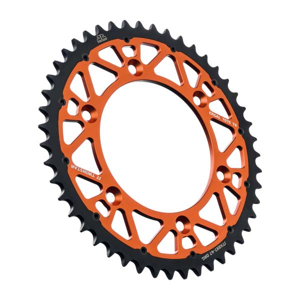 - The steel outer ring is heat-induction hardened to create a sprocket which will last up to six times longer than a standard 7075-T6 aluminium sprocket