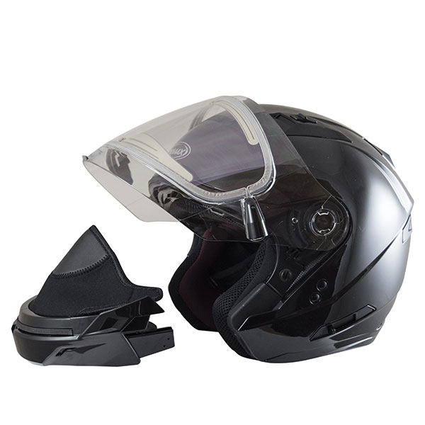 The all NEW OF77 helmet is based off of the very successful GM67. Features the all new Spa Soft and Coolmax interior and multi-density cheek pads. The OF77 is like having two helmets in one. It offers the comfort of an open helmet, plus it quickly and easily converts to a full face helmet for those looking for increased protection and comfort with the installation of the removeable jaw piece.The 67s delivers a greater field of vision due to its large shield surface. Even with the removable jaw piece in place, the 67s field of vision is greater than most traditional full face helmets