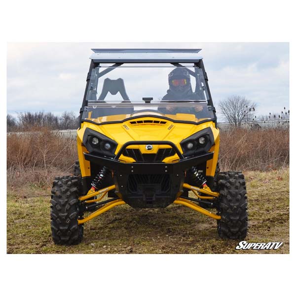 Get SuperATV's Scratch-Resistant Flip Windshield for your Can-Am Commander and be ready to take on any challenging terrain. Our flip windshield gives you options thanks to our multi-stage latching mechanism. It's a full windshield when you want to stay warm and keep the rain and mud out, a vented windshield when you want to let the air in while staying protected, and a half windshield when you want plenty of air to keep you cool. The best part? Powerful gas struts make it easy to open and close right from your seat.